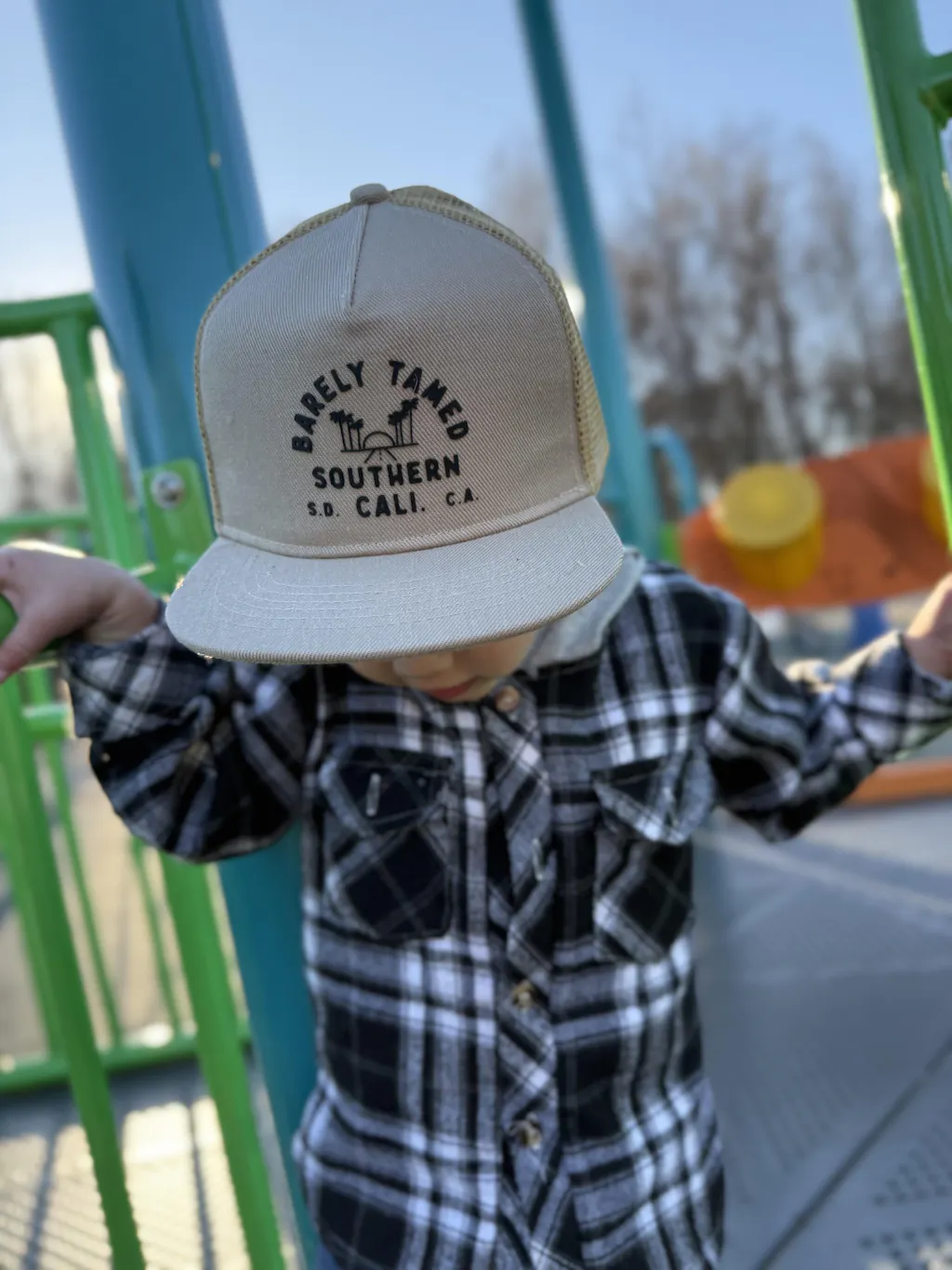 Beech Strand Trucker Hat- Tan | Toddler Graphic Snapback